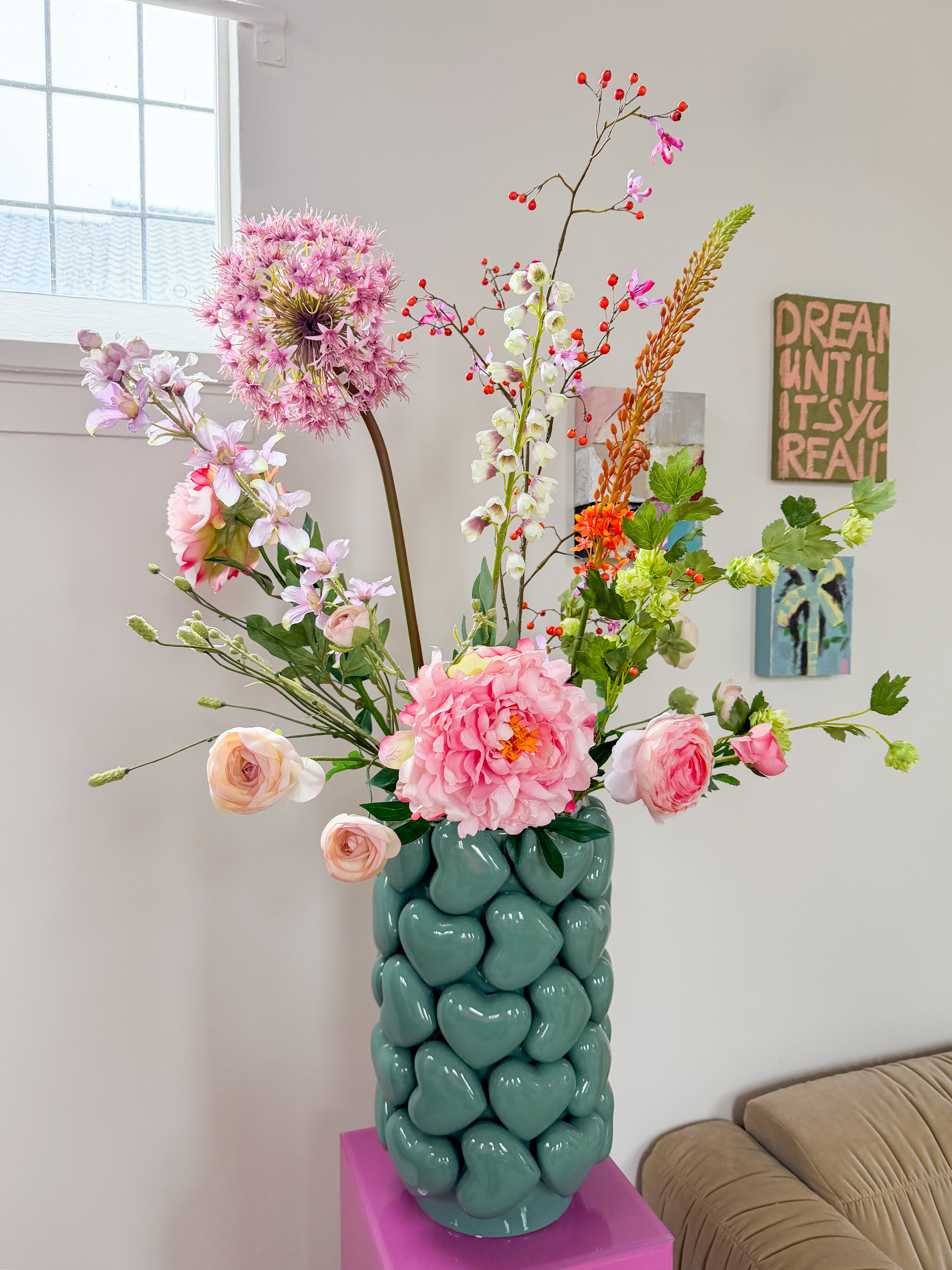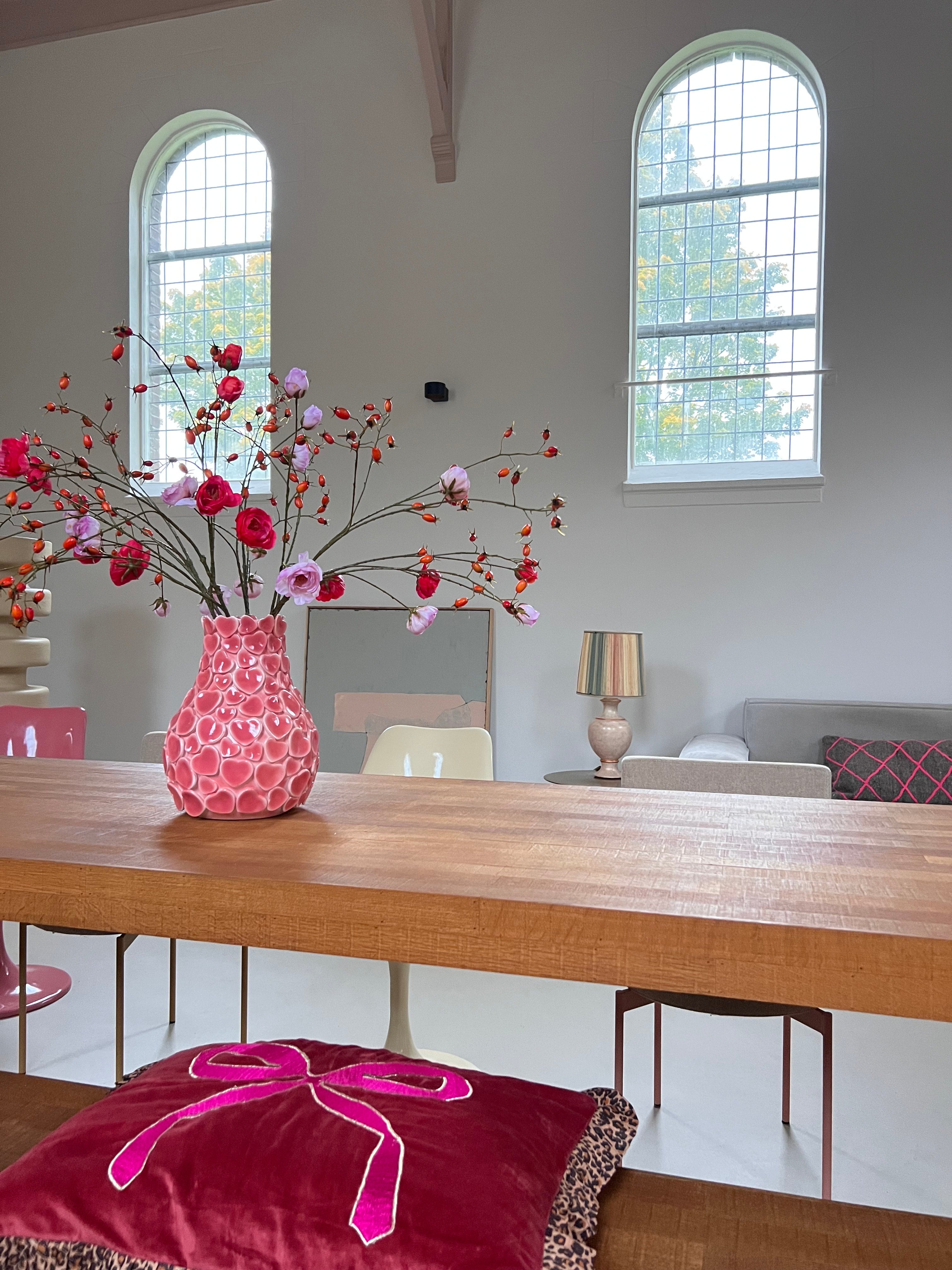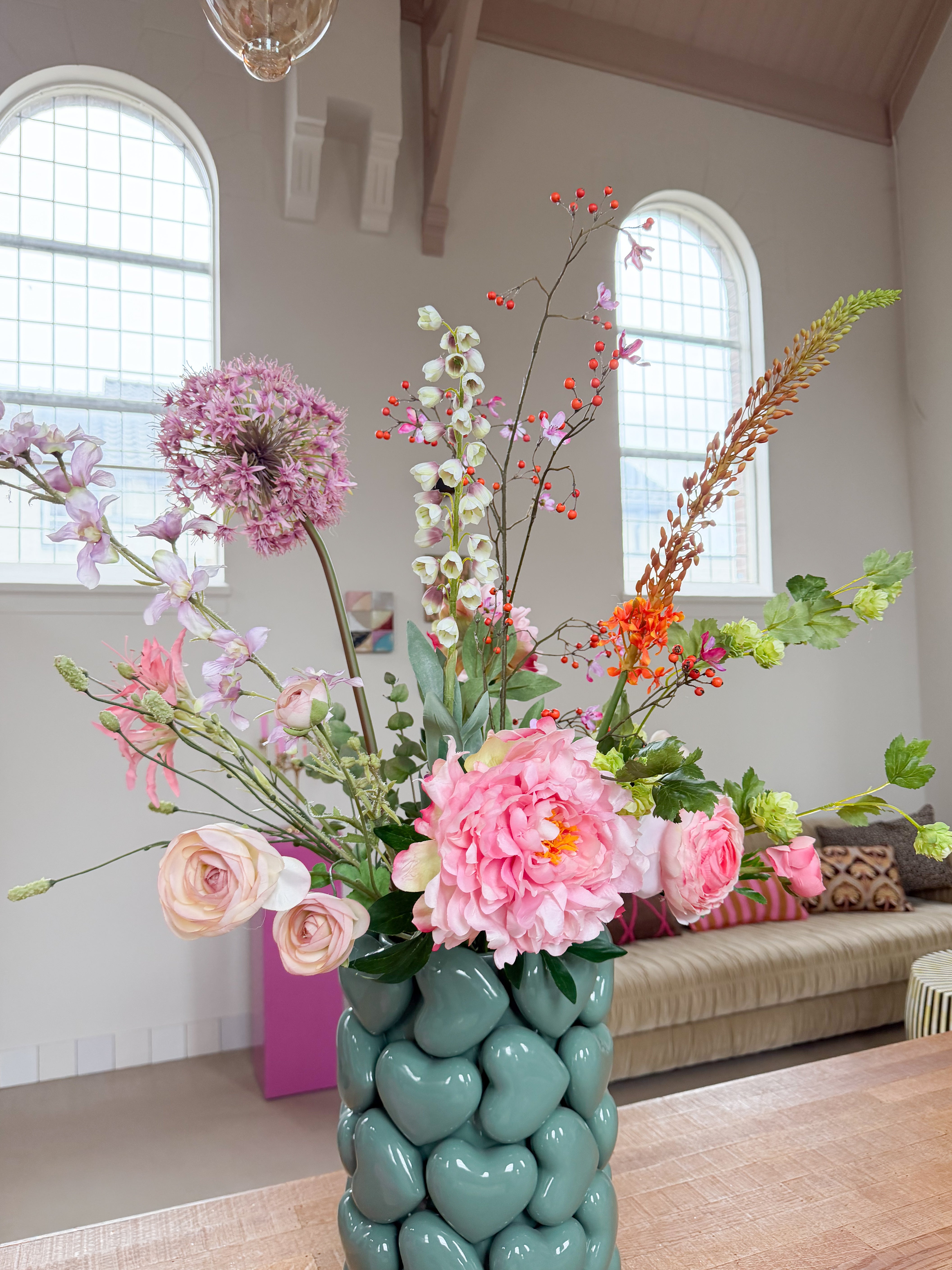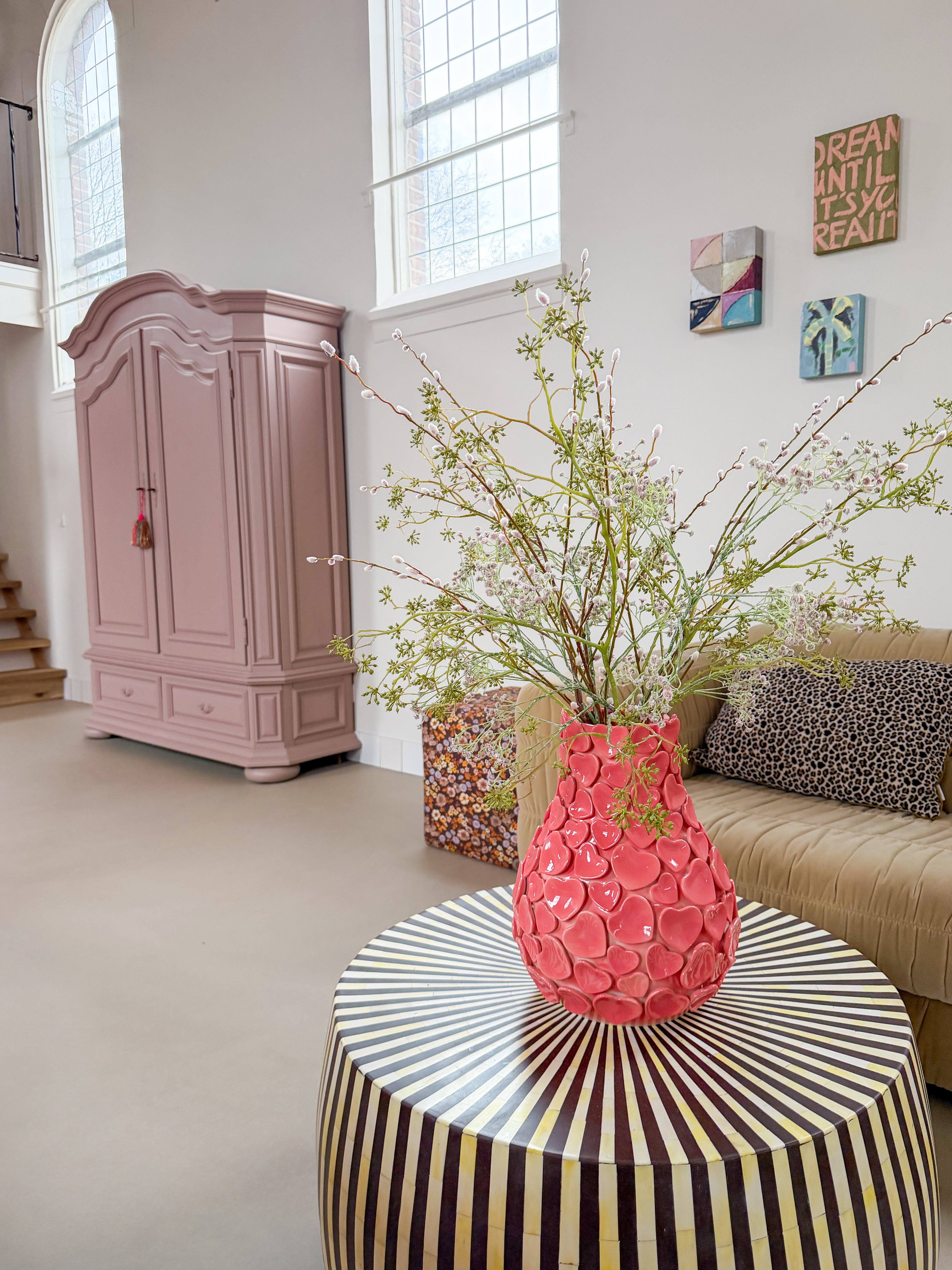 Als kind vond ik het al heerlijk om te struinen over de markt en te zoeken naar de mooiste stoffen. Wekelijks sleepte ik met de meubels op mijn zolderkamer en was ik altijd bezig om het gezellig te maken! Ik ontwikkelde een enorme passie voor interieur en styling en ben inmiddels al 10 jaar trotse eigenaar van de winkel Plein Vijf in Elst. Vanuit mijn zoektocht naar mooie unieke producten en mijn liefde voor kleur en interieur, is KLEURLIEFDE ontstaan! Ik ontwierp de hartjes- en sterrenvaas en ging op zoek naar een fabrikant. Met de hand zijn ze met heel veel liefde vervaardigd en inmiddels siert de vaas heel veel interieurs. Ik ben ongelofelijk trots en dankbaar dat ik wat klein begon, zo heb kunnen laten groeien en hoop vanuit mijn liefde voor kleur en interieur nog veel meer moois te creeëren!
