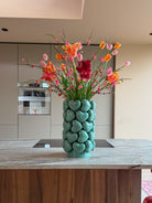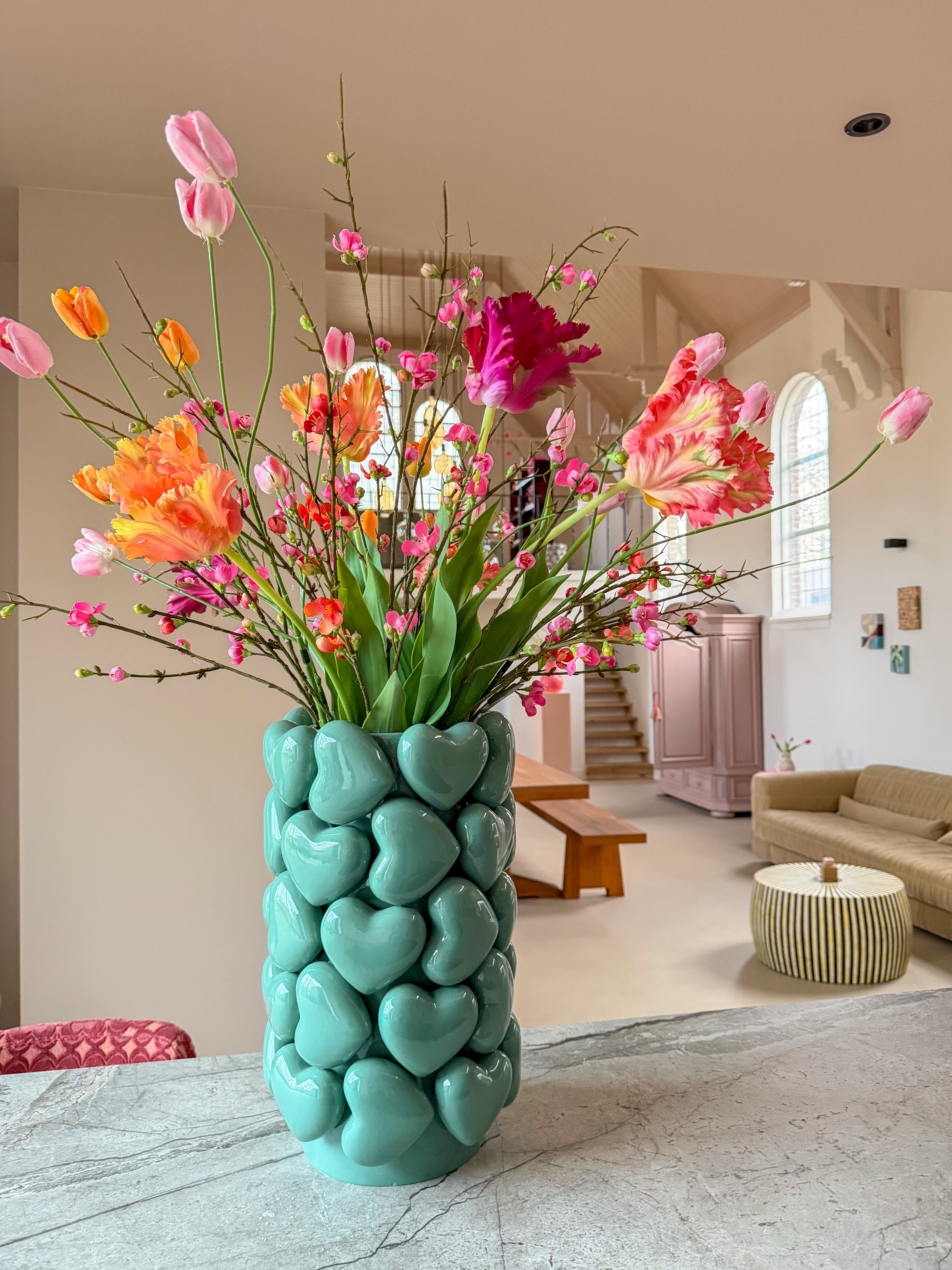 De nieuwe tafel vroeg om een knaller van een vaas. En ik vond die bij Kleurliefde ❤️