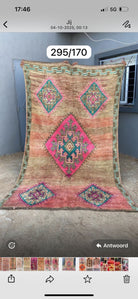 De warme tinten worden prachtig gecombineerd met levendige accenten in roze en groen. De geometrische Berbermotieven geven het kleed een authentieke, artistieke uitstraling.